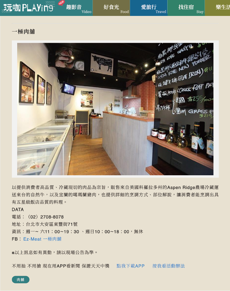 近年好多這類的新式肉鋪,提供小分量精選部位及只能在餐廳吃到的國外頂級肉品 不但一家比一家精緻時髦,更貼近顧........(詳細閱讀)